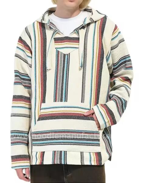 Enquiry for Private LabelThis wholesale Mexican Baja hoodie offers a unique blend of style and comfort, making it a must-have for retailers seeking versatile, eye-catching apparel. Featuring the classic Baja design, it is made from a soft, durable fabric that ensures warmth and breathability. The colorful woven patterns and hood add a rustic yet trendy touch, perfect for casual outings or laid-back events. Available in various designs, this hoodie provides options for customers with different tastes. Its lightweight construction makes it an ideal layer for transitional weather, while the roomy fit ensures comfort throughout the day. Ideal for beachgoers, travelers, and fashion-conscious individuals alike, these wholesale hoodies are an excellent addition to any retail collection.