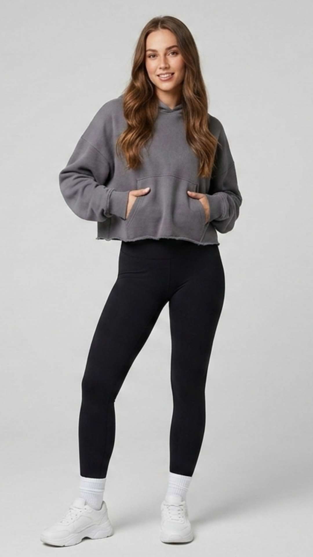 Cropped oversized hoodies pair effortlessly with high-waist bottoms. The shorter cut balances proportions and highlights modern street-inspired styling.